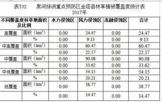 2013-2017年湟水洮河中下游国家级重点治理区林草植被覆盖统计表数据集