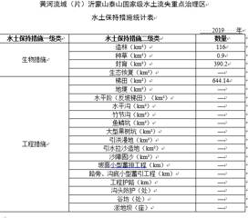 2019年沂蒙山泰山国家级重点治理区水土保持措施统计表数据集包括山东省历城区、长清区、泰山区、岱岳区、新泰市、莱城区、钢城区2019年的水土保持措施统计表,