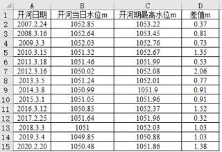 宁蒙河段各站水位涨幅统计表数据集(2007-2020年)